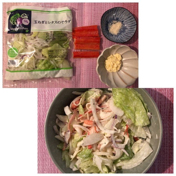 カットレタスとカニカマで「やみつきカニカマサラダ」