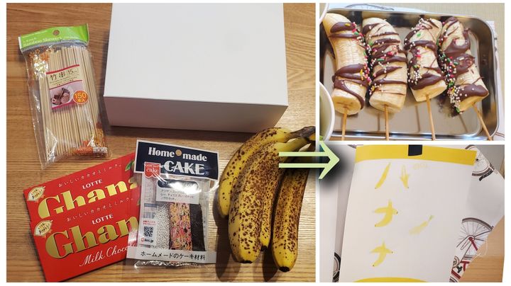 ・チョコバナナ → 板チョコをレンジで溶かし、