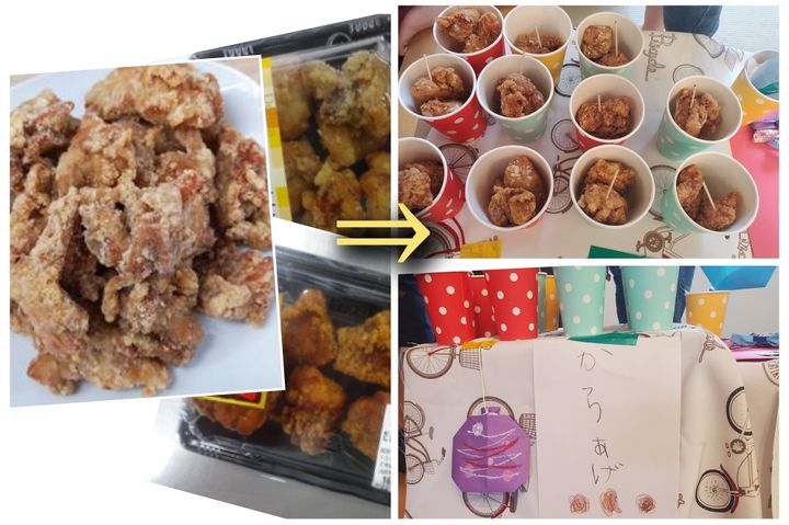 ・から揚げ → 紙コップに入れて、つまようじやピックをさす