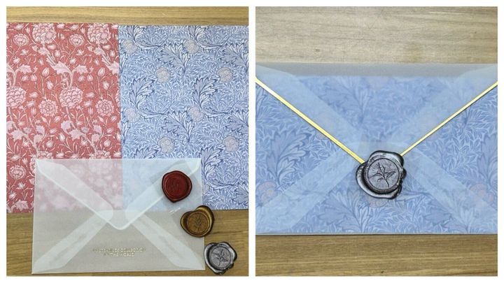 透ける素材の封筒から、便箋の柄が見えるのがとてもおしゃれ。