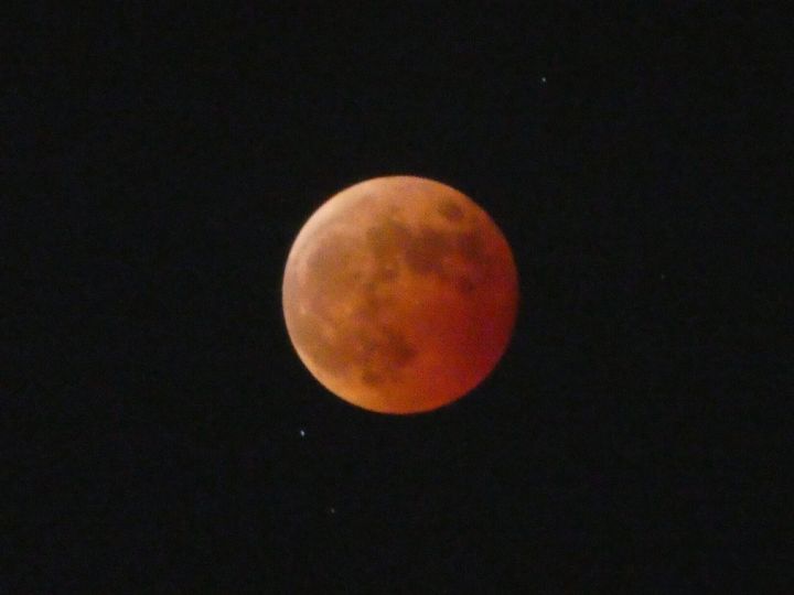 今夜の月食は18時台から月が欠け始め、19時過ぎにはすべてが地球の影に入る「皆既」状態になりました。