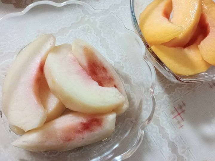 理想は、常温で保存しておいた桃を、切る前に15分間ほど氷水に浸けること。