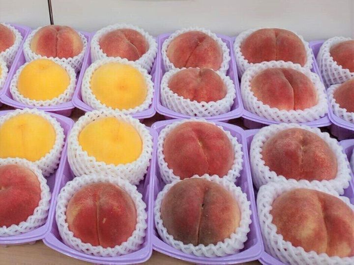 おいしい桃の特徴として、皮の色は地が鮮やかな黄色で、その上に赤い色がしっかりついているのが良い、というのは一応あるのですが…、そもそも最近は桃の品種が増えていて様々な色のものがあるため、あまりアテにはなりません。