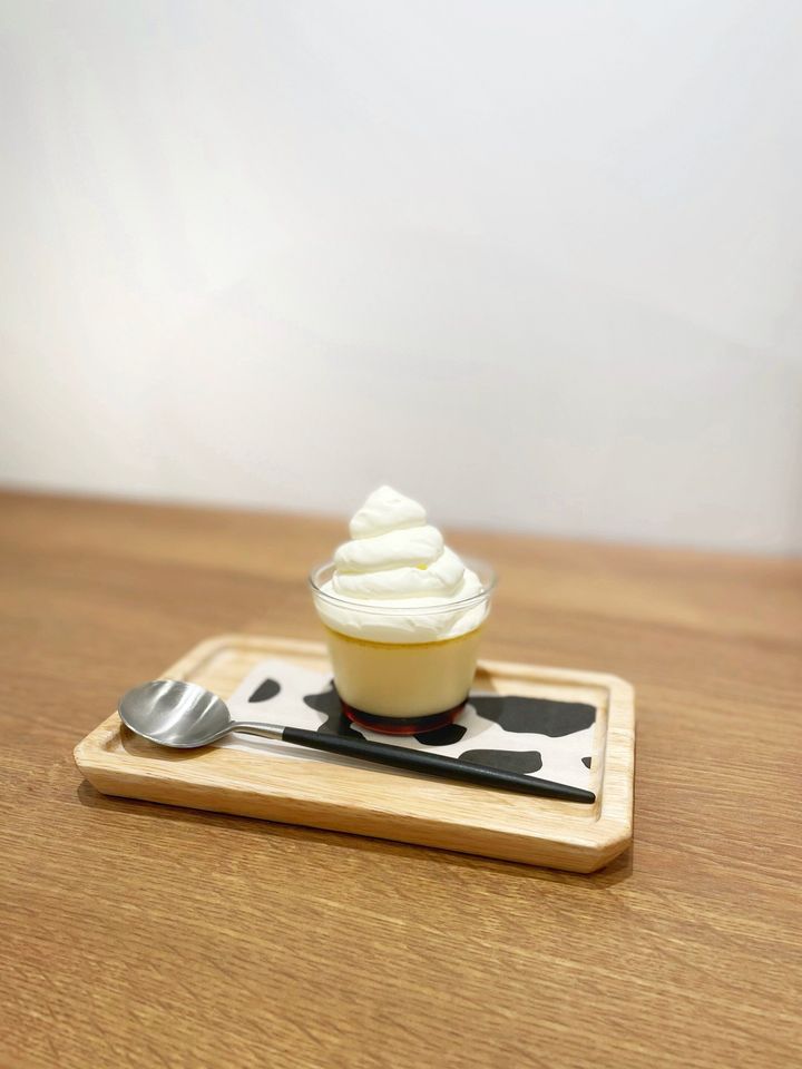 北海道産の牛乳と生クリームが使われたプリン。底のソースは北海道のてんさい糖を使って作られたキャラメルです。