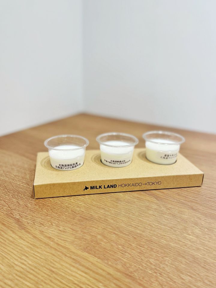 「選べる!3種の北海道ミルク飲み比べ」¥198(税込)では12種類ある銘柄から3種類を選ぶという飲み比べメニューがあって、気になる銘柄を試してみたい方や、味の違いを体験したい方にはオススメです。