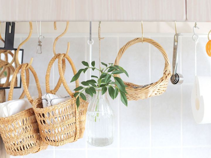 お気に入りのカゴや道具は見せる収納で見た目に楽しく、