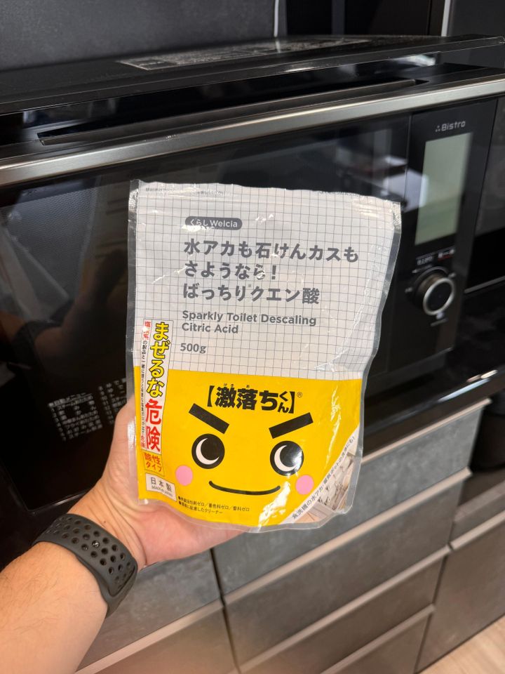 耐熱カップに水100mlとクエン酸小さじ1を入れて、油汚れと同じく500Wで5分加熱し、そのまま5分放置します。