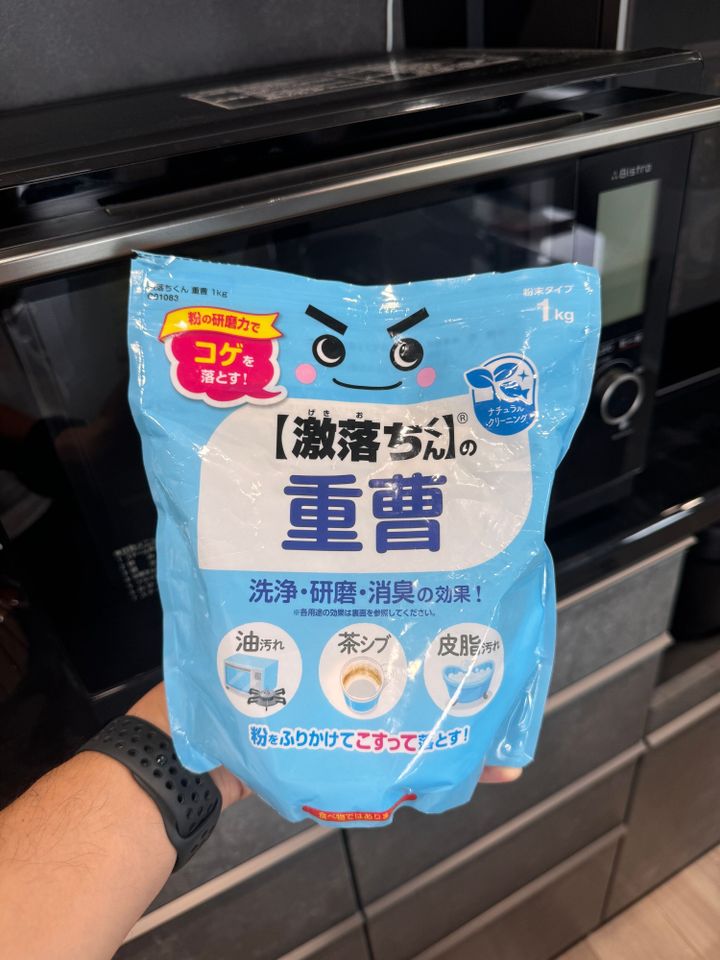 耐熱カップに水100mlと重曹小さじ1を入れて500Wで5分チンします。