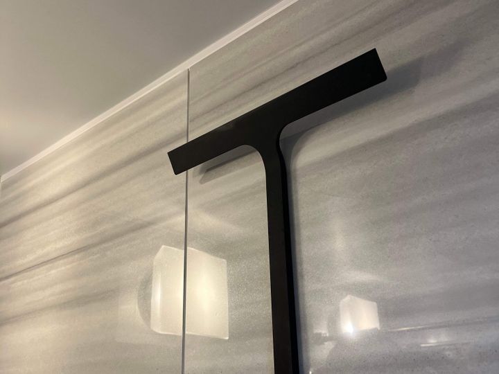 具体的にはお風呂上がりに水切りワイパーで鏡の水をとることを我が家のルールにしました。