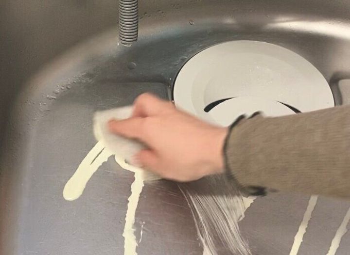 クレンザーとスポンジでシンク全体を磨いていきます。