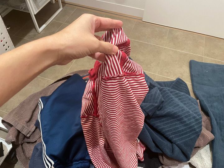 これは子どもたちが脱いだズボンや夫がぬいだ靴下が該当します。洗濯工程を見直したときに、いっそのことやめてしまおうと思ったのが、この裏返った衣類をくるっとひっくり返して戻す動作。