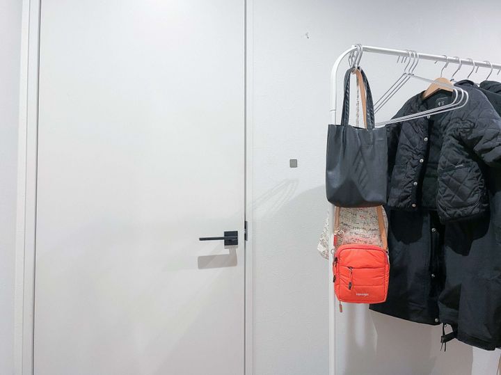 私のメインバックは財布や携帯など必要最低限入る小ぶりのもの。数も2種類しか稼働させていません。お出かけの時に選ぶ上着によって、すぐ取れる位置に引っ掛けたら、バックの整理整頓が完了です。