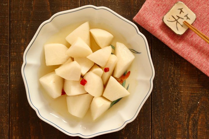 夏大根は辛味があるので、米酢の酸味、本みりんの甘味を加えて調和させます。