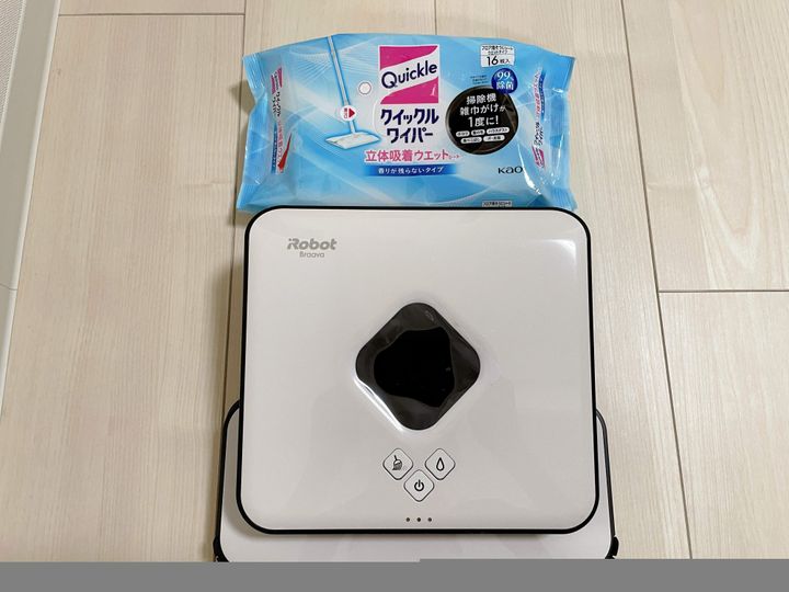 事前に掃除機をかけてから、ブラーバで拭き掃除をした方が床がキレイになりますが、時間が無い日は大変です。