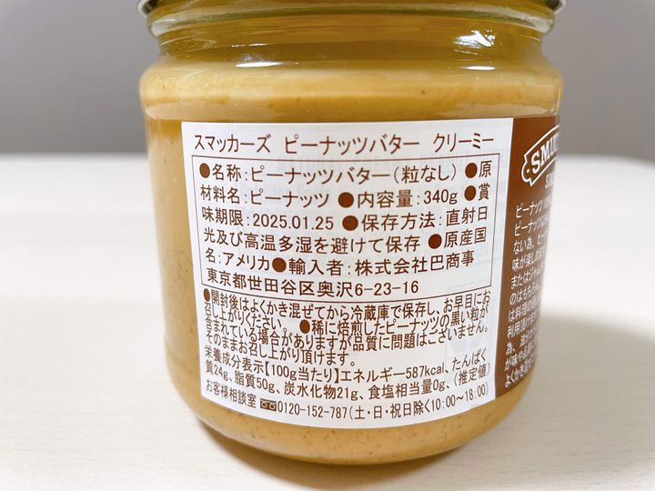 今回購入した商品は、スマッカーズのナチュラルピーナッツバタークリーミーです!