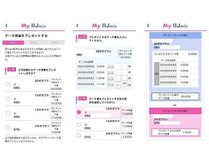 何より一番気に入っているのは、IIJmioのアプリ上で簡単にデータプレゼントができること。