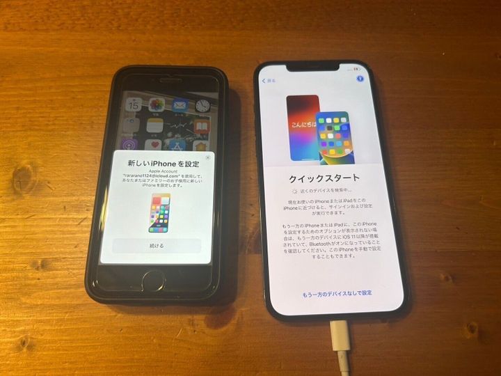 iPhoneの機種変更は隣に新しいiPhoneを置いて指示に従って進んでいくだけであっという間です。昔のように転送アプリを入れる必要もありません。