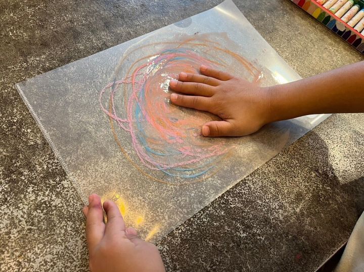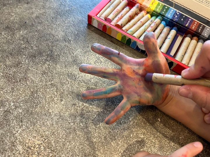 2つ目は、手に直接キットパスで塗り塗りしていく方法です。