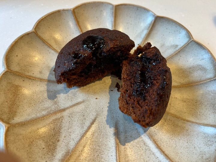 割ってみると、チョコクリームがとろけてまるでフォンダンショコラのようです。生地もふわふわになりました!