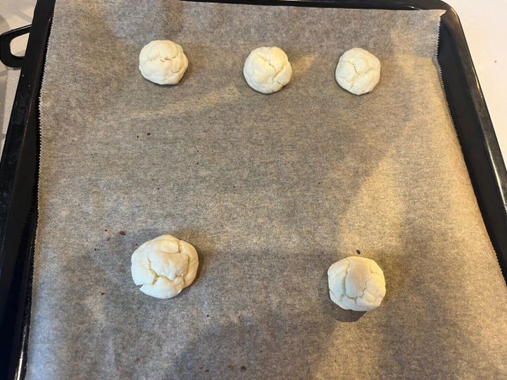 30分経ち冷蔵庫から取り出したら、丸めて成形し170℃に予熱したオーブンで12〜13分焼きます。