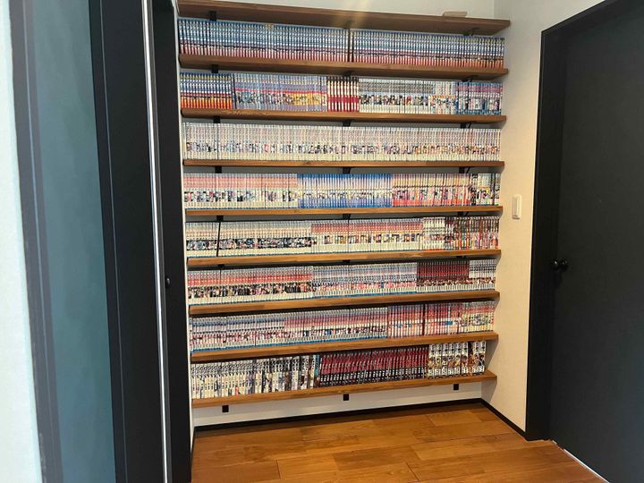 現在は2階の廊下に作りつけてもらった本棚に漫画を収納しています。