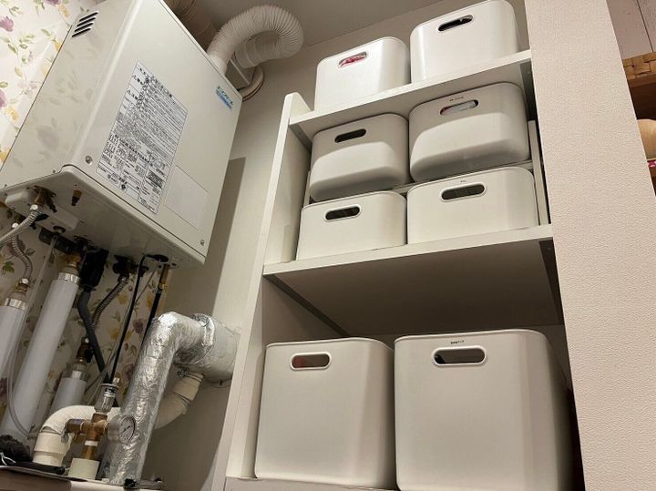 棚の中も、収納ケースを使っているのでもしも地震で棚のものが落ちたとしても被害が最小限で済みます。