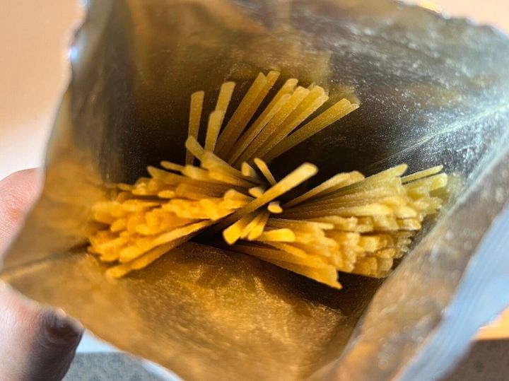 袋の中にパスタの麺と粉末状になったソースが入っている商品です。