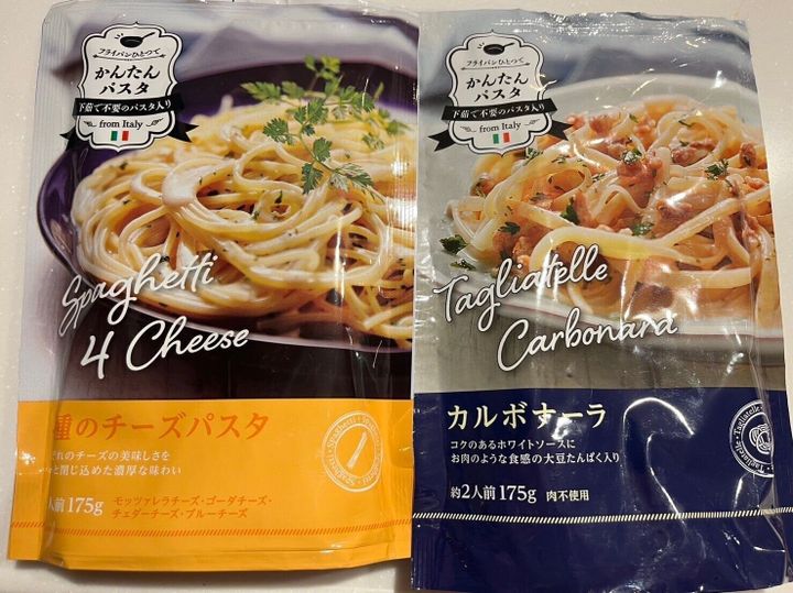 いくつか種類があるのですが、その中から今回は4種のチーズパスタとカルボナーラを購入しました。