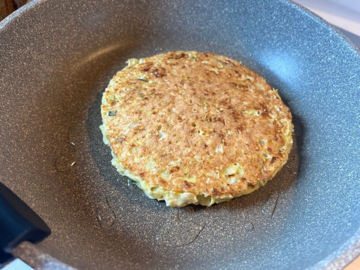 オートミールのお好み焼きは、ふわふわで中はトロッとした食感です。