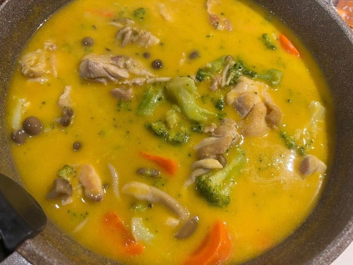 かぼちゃのうまみが溶け込んだシチューは、チーズとバターを使用しており濃厚な味わい。よく、「シチューはおかずになるのか?」論争がありますが…このシチューはごはんと一緒に食べてもおいしいです。もちろんパンとも相性バツグン!具材にもかぼちゃを使えば、よりかぼちゃ感を楽しめておすすめですよ。冷凍のかぼちゃなら、ルーを加える前に入れるだけでOKなので手軽です。