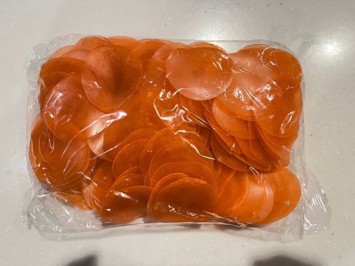 揚げる前のえびせんべいは、半透明のオレンジ色で硬くて小さいので本当にあのピンクでふわっとした状態になるのか信じられませんよね。
