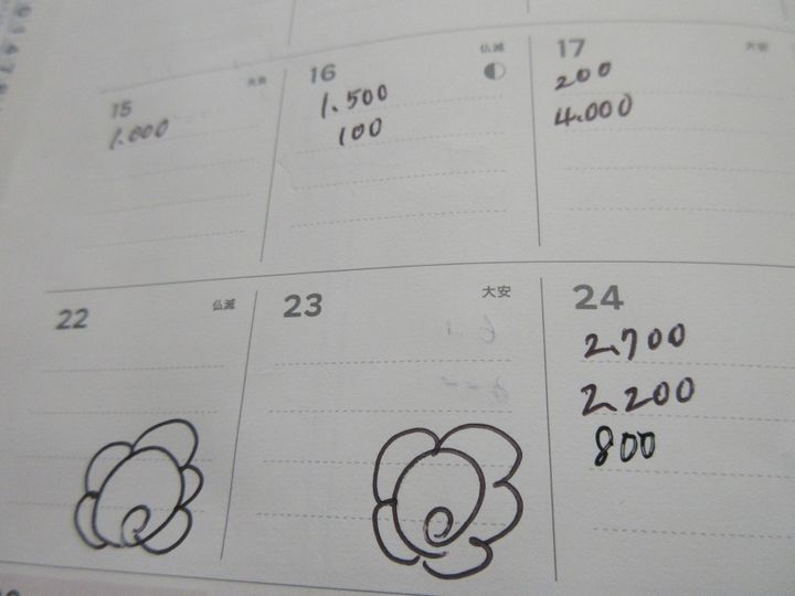 以前、家計簿をつけるときに、節約効果が高いといわれている「買わない日」を増やす目的で「お金を使わなかった日は家計簿のスケジュール欄に花丸を描く」ことにしました。