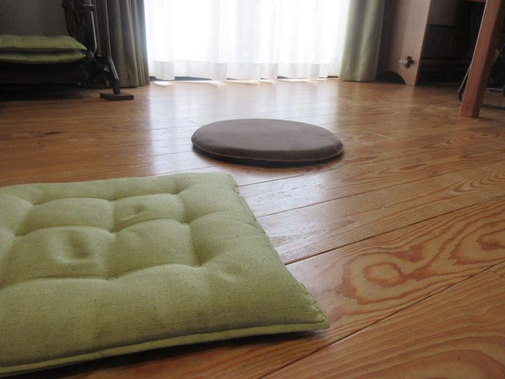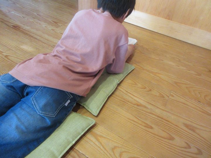 座布団を二枚並べて寝転んだり、壁に持たれたり、イスの座面に敷いたり、子どもの友人が来たときは2階の子ども部屋に持って上がったり。