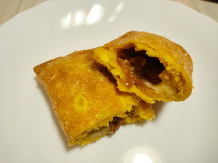 続いて、マクドナルド2024年冬の新作「バタースコッチパイ」。バタークッキーの入ったクリーム、そして濃厚なキャラメルクリームの2種類のクリームが入った贅沢な味わいのパイです。