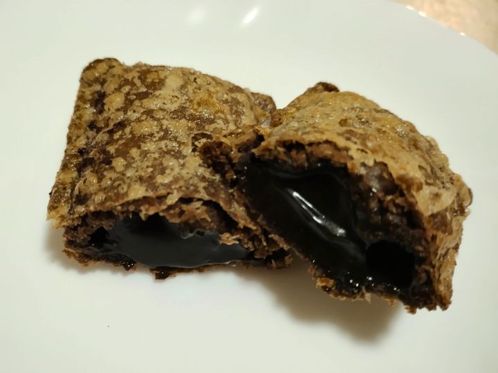 マクドナルドでは毎年三角チョコパイが販売されていますが、「ベルギーショコラパイ」は四角いチョコのパイです。「ベルギーショコラパイ」には、ベルギー産チョコレートを使用したチョコレートクリームがぎっしり入っています。