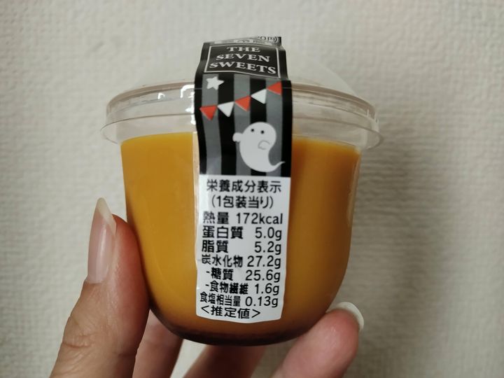 かぼちゃの濃厚プリンのお値段は税込259円です。手に取りやすい価格なのがうれしいですね。またカロリーは1つ172kcalと比較的低め。上に生クリームがトッピングされており、しっかり甘いのに意外にも低カロリーなプリンです。