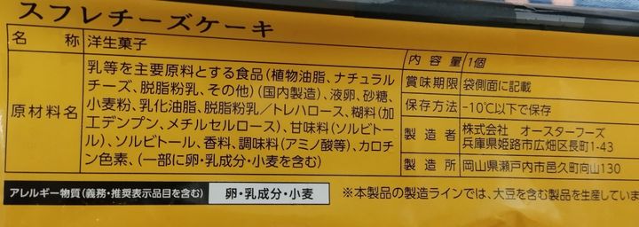 製造者は「オースターフーズ」という兵庫県の会社です。筆者が購入したときの価格は税込429.84円でした。値段が値段なので、すっかり海外製かと思いきや、国産のチーズケーキです。