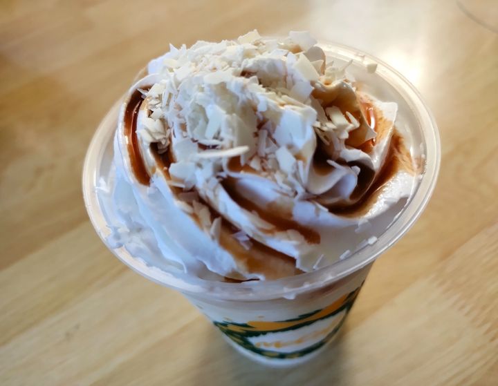 まったりホワイトチョコレート味のフラッペに思わずほっこりします。ホイップクリームとキャラメルソースを混ぜると、さらにまったりした味わいに。濃厚で優しい味のフラッペです。子どもたちと一緒に飲んだのですが、我が家の子どもたちもとっても気に入っていました!