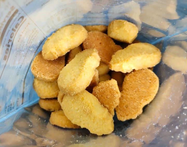 それでは早速いただきます。封を開けてみると、パイナップルの形のクッキーがたくさん入っています。封を開けた瞬間、レモンの香りが広がりました。開けたときレモンの香りが強かったので酸味が強いのかと思いましたが、食べてみるとレモンの香りはほんのり。