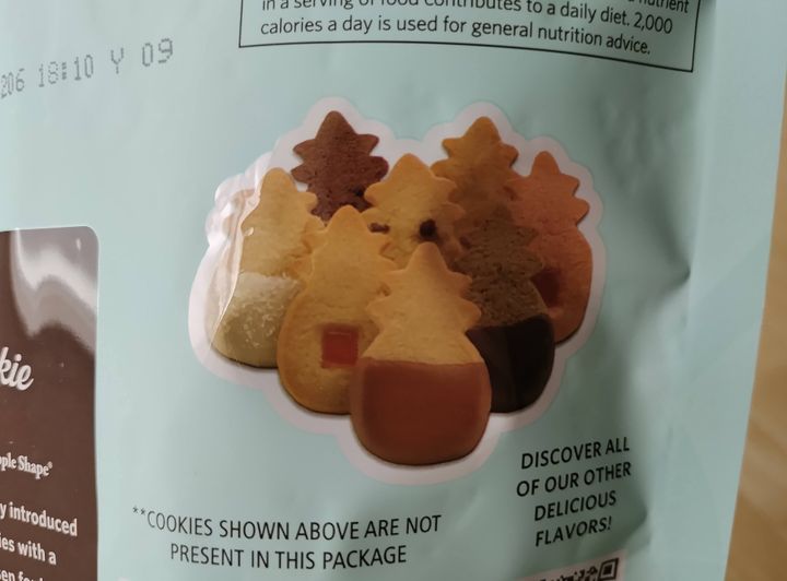 ちなみにパッケージ裏には、このように数種類のホノルルクッキーの写真が載っているのですが、入っているのは1口サイズのミニバイツのレモン味1種類のみです。