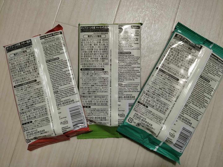 先日業務スーパーにお買い物に行ったところ、レジのすぐ隣に置いてあったのを発見しました。1袋100円もしなかったので、3種類全部購入してみました!