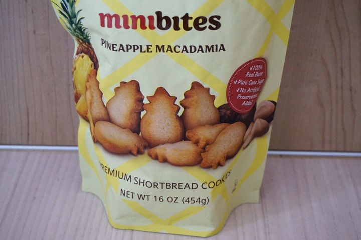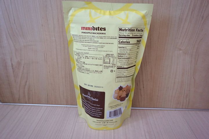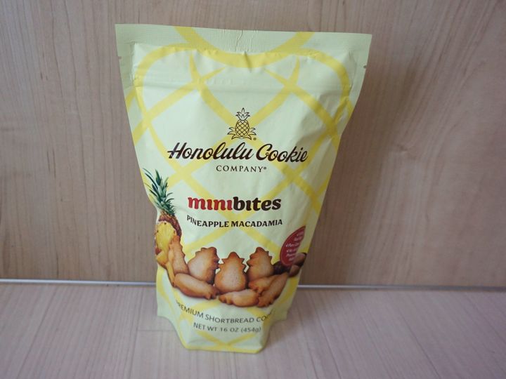 バターの香りとパイナップルの酸味がとても病みつきになってしまうホノルルクッキーミニバイツパイナップルマカダミア。ミニバイツ(1口サイズ)ということもあり、筆者が食べたことのあるホノルルクッキーの中では一番とても食べやすく、ついつい手が伸びてしまいます。
