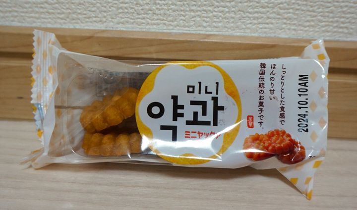韓国の伝統スイーツ「ヤックァ」を小さくしたミニヤックァ。クッキーくらいの大きさのヤックァが10個入りで、税込111.24円とお手軽価格です。一般的に韓国で食べられているヤックァと比べると小さめです。