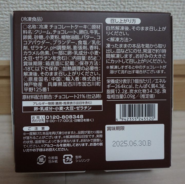 アルコール(ブランデー)を使用しているそうなので、酒の弱い方やお子様はお気をつけくださいとのことです(ちなみに筆者もお酒は弱いほうですが、丸々1つ食べても特に問題ありませんでした。敏感なかたはお気を付けくださいね)。