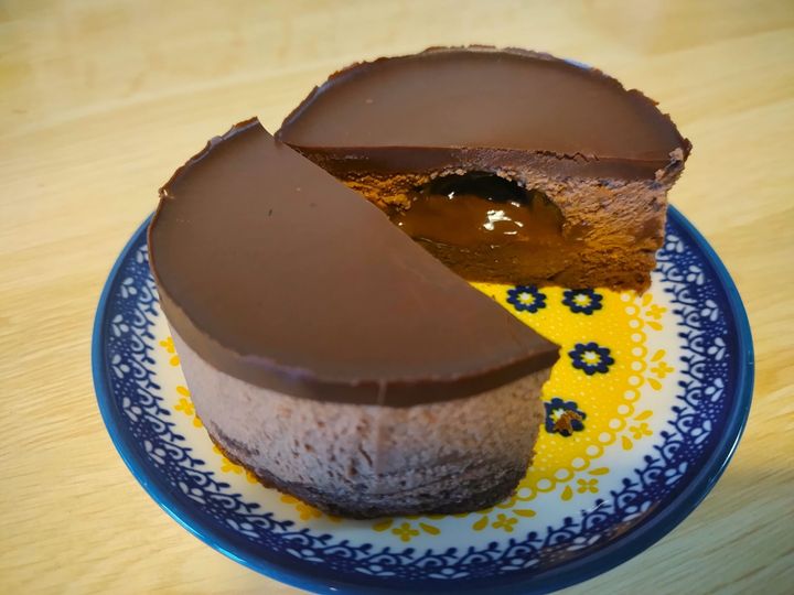 上からガナッシュ、チョコレートムース(中央にチョコレートソース)、一番下はチョコレートスポンジとチョコレート三昧なケーキです。甘みが強いのではないかと思いましたが、思いのほかビターな味わいで大人向けなチョコレートケーキだと思いました。