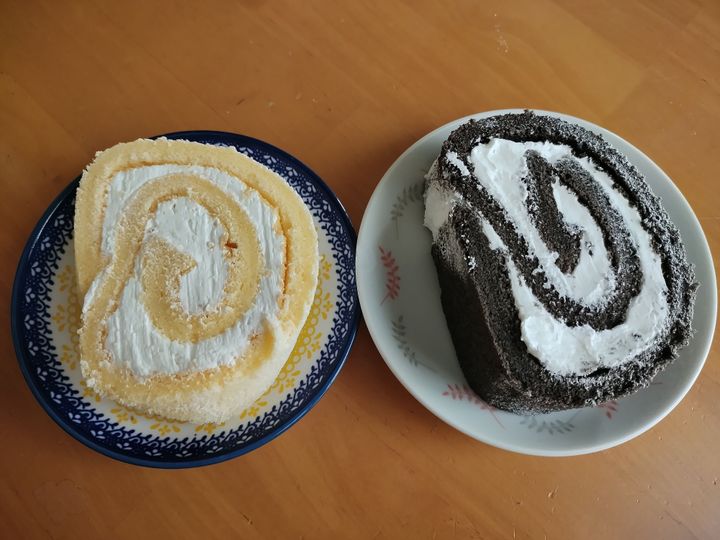 ロールケーキの表面には粉糖がまぶしてあり、切れ目にはクリームがたっぷり入っています。プレーンはほんのり卵の風味を感じます。クリームとの相性がよくて、ついつい食べ過ぎてしまいます。