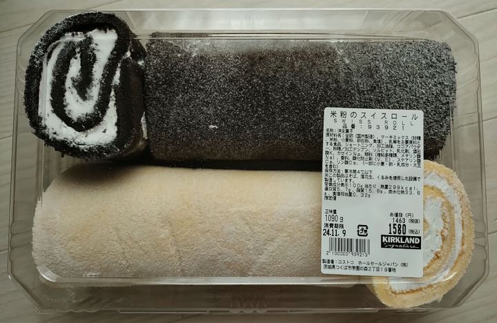 コストコの米粉のスイスロールは2本で税込1580円です。2024年11月に筆者が購入したのはこの金額ですが、筆者がコストコに通い始めた時は1000円以下でした。現在は1.5倍くらいに値上がりしていますが、それでもかなりリーズナブルだと思います。