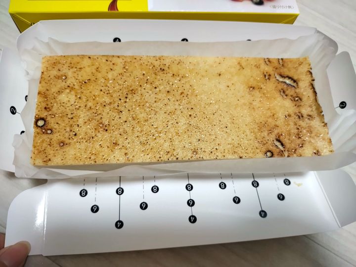 箱の一番下には線が引いてあります。平等に分けたいときによさそうですよね。4等分にしたいときは「4」のところで、6等分にしたいときは「6」のところでカットすればよいので分かりやすくてグッドです。