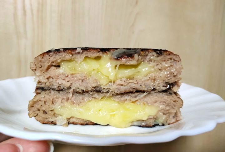 【業務スーパー】焼くだけ!おうちで楽しめる「チーズインハンバーグ」