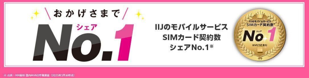大手回線を借りて格安な通信を提供している会社を「MVNO」といいますが、そのMVNOの市場の中でシェアNo.1※なのが「IIJmio」。